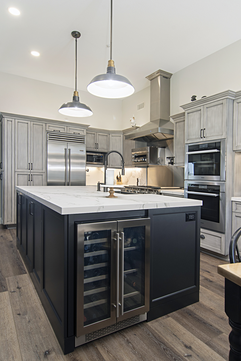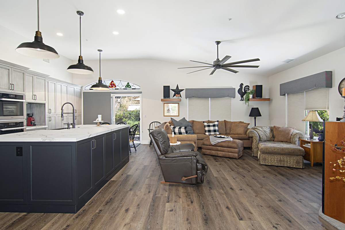 Our client of this beautiful Mount Helix home desired a space that would flow and tie the kitchen, dining, and living room area together. We added additional recessed can lights that matched the previous lights installed and also replaced the kitchen, living, dining, and hall flooring with wood-look luxury vinyl plank flooring. Visit our Chef’s Kitchen Page to learn more about the additional features that were added to this lovely home.
